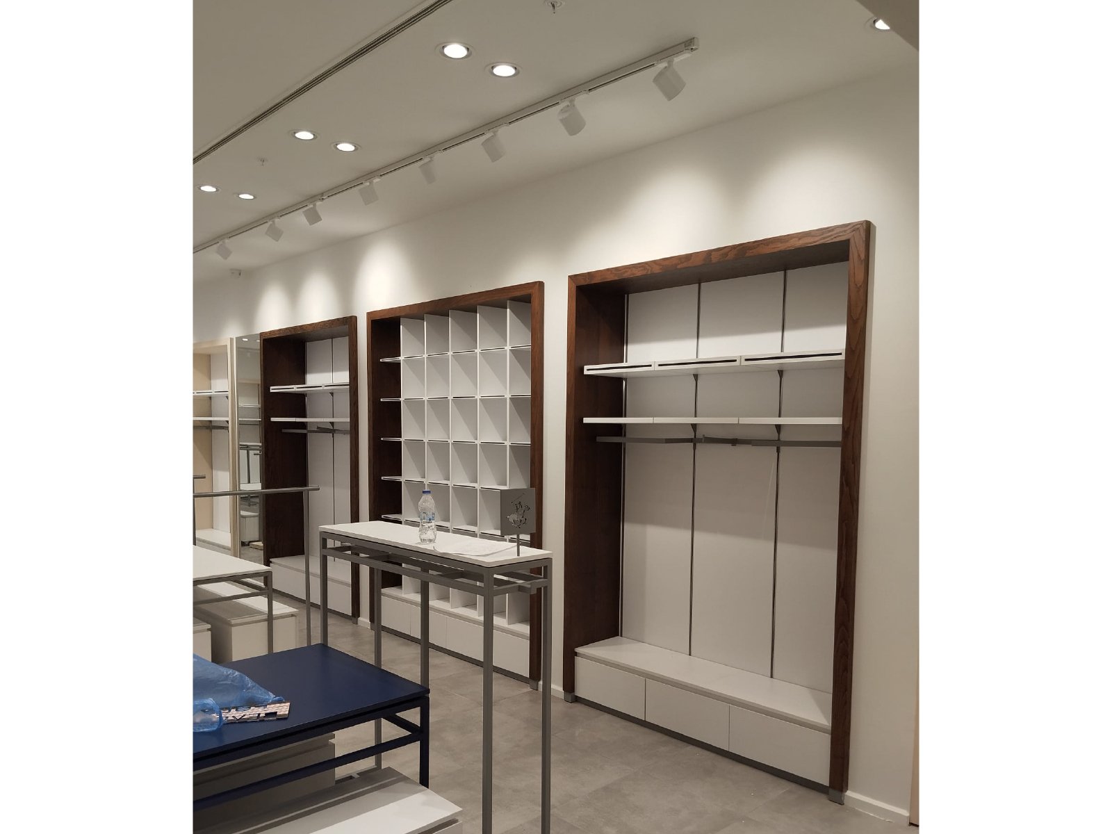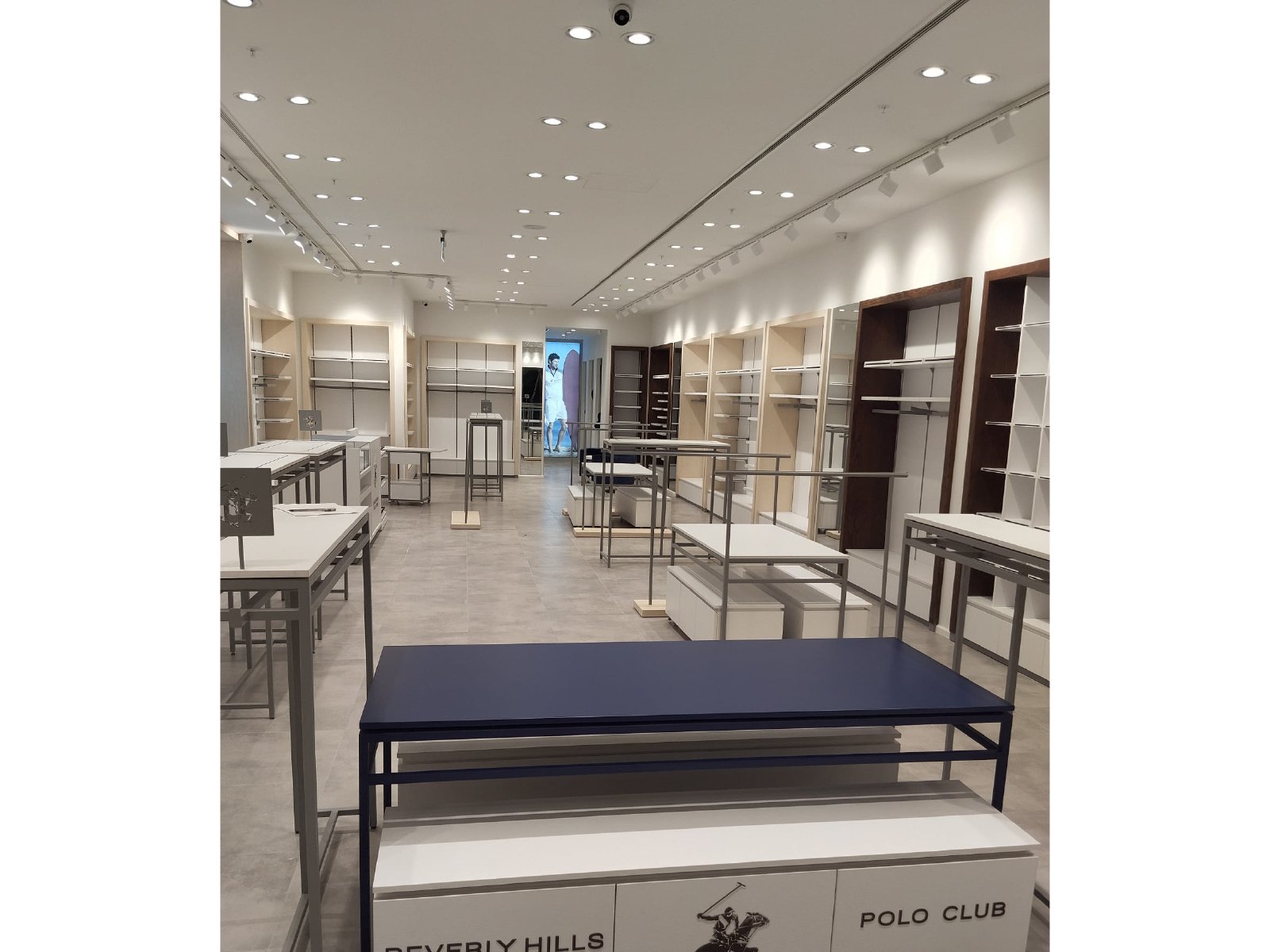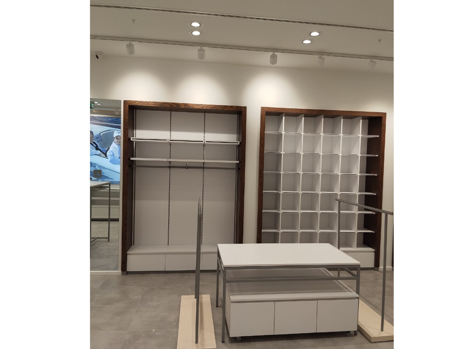 U.S. POLO ASSN. mağaza projelerinde, markanın zamansız stilini ve kurumsal kimliğini destekleyen raf ve mağaza içi dekorasyon çözümleri tasarlanmıştır.