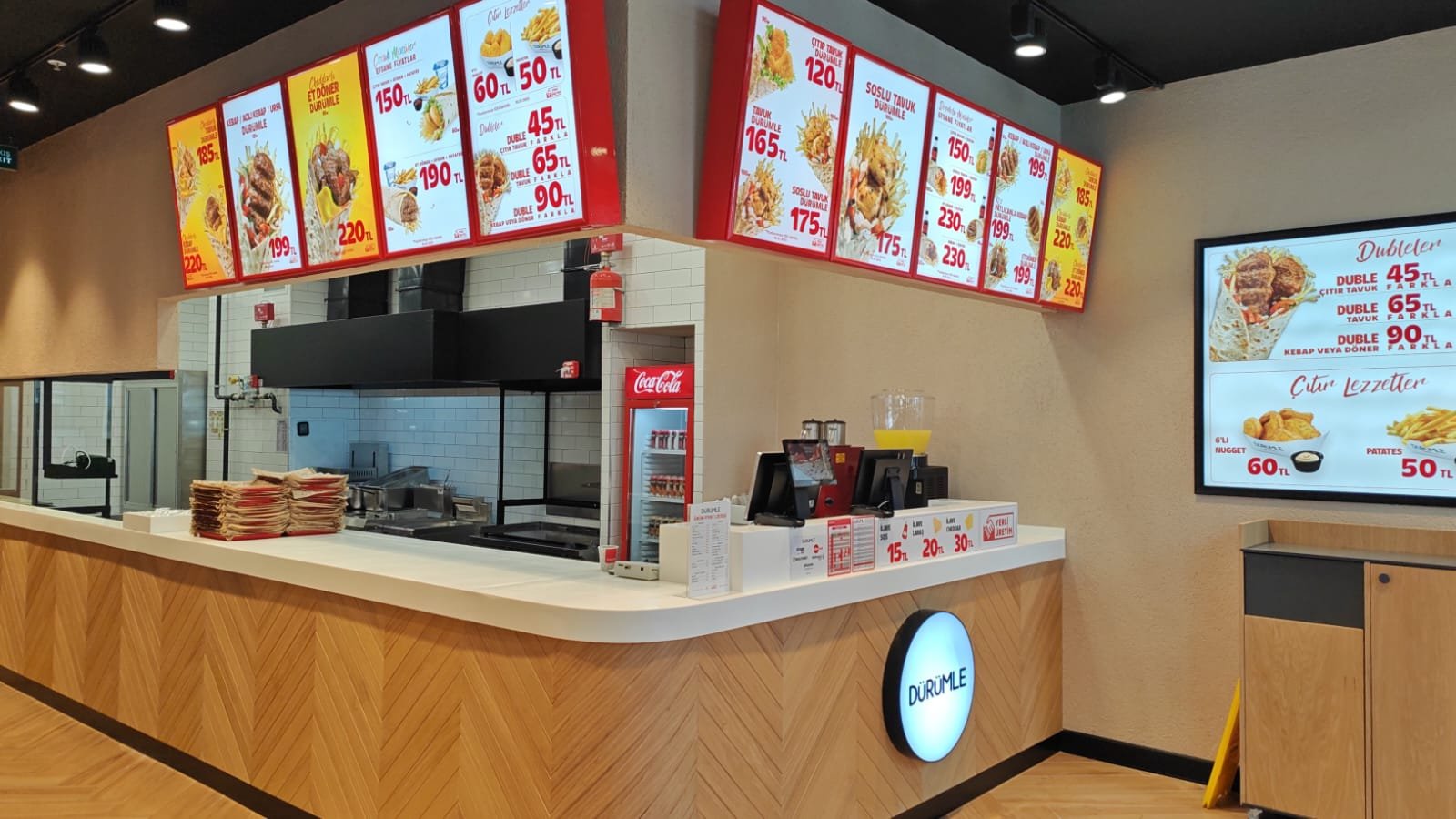 Dürümle mağaza projelerinde, yoğun müşteri trafiğine uygun, fonksiyonel ve dayanıklı raf sistemleri tasarlanmıştır.