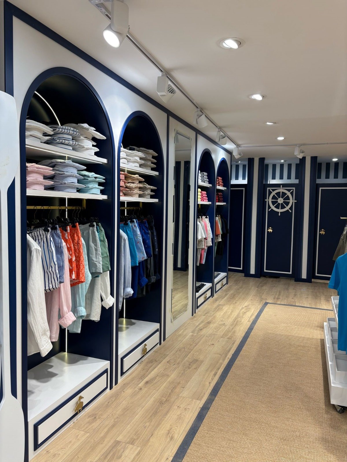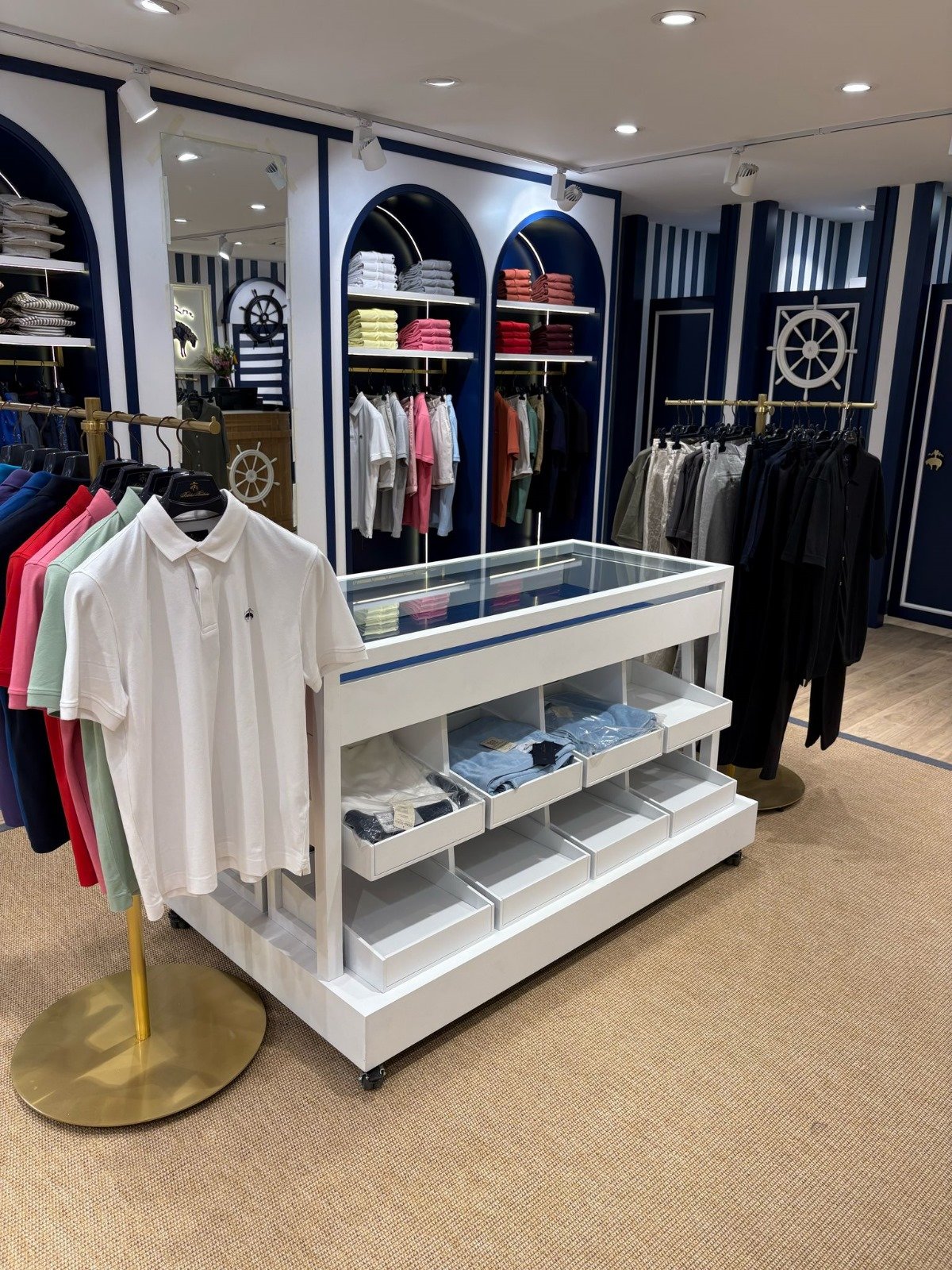 BROOKS BROTHERS için hayata geçirilen mağaza iç dekorasyon uygulamasında; klasik ve modern çizgilerin uyumu, marka standartları ve müşteri deneyimi öncelikli olarak ele alınmıştır.